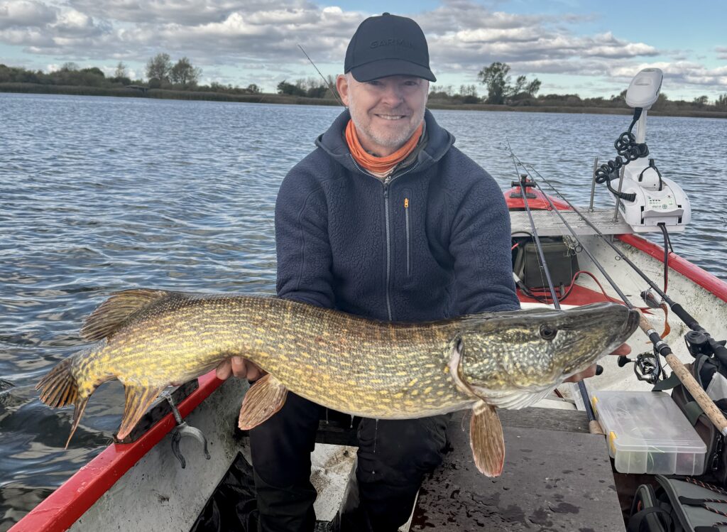 Bedste lokkende agn var jerkbaits fisket på kanten af de dybere områder. Det blev til en “pæn stak”, som Klaus udtrykker det. Den største var på 112 centimeter og vejede 8,90 kg. Den blev taget på en blank Mepps. Så sig ikke at den gode gammeldags spinner ikke kan fange fisk. Stort tillykke til Klaus.