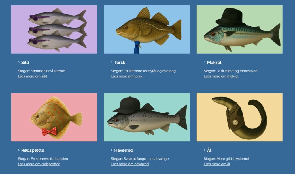 Der er måske nogen, som mangler “Den panerede fiskefilet” og den marinerede sild. Statsminister, Mette Frederiksenhelt sikkert “makrel i tomat” mens andre helt sikkert vil foreslå torsken, hvor de vil blive mødt af argumentet om, at der ikke flere torsk er tilbage i danske farvande og den resterende bestand holder til på Christiansborg. Det kan hurtigt udvikle sig, men tag det som det er og gå ind og stem. I en verden hvor man kun hører om død og ødelæggelse, er det rart at kunne foretage sig noget, der kan imødeses med et smil. Det er ikke for at påvirke valget, men Storm P. sagde som bekendt, “at de må være koldt at være rødspætte”. En stemme på den vil måske varme den elskede flynder lidt. Valgets sejrherre holder næppe stor valgfest, og hvis den gør, deltager den sikkert kun som en del at menuen.
